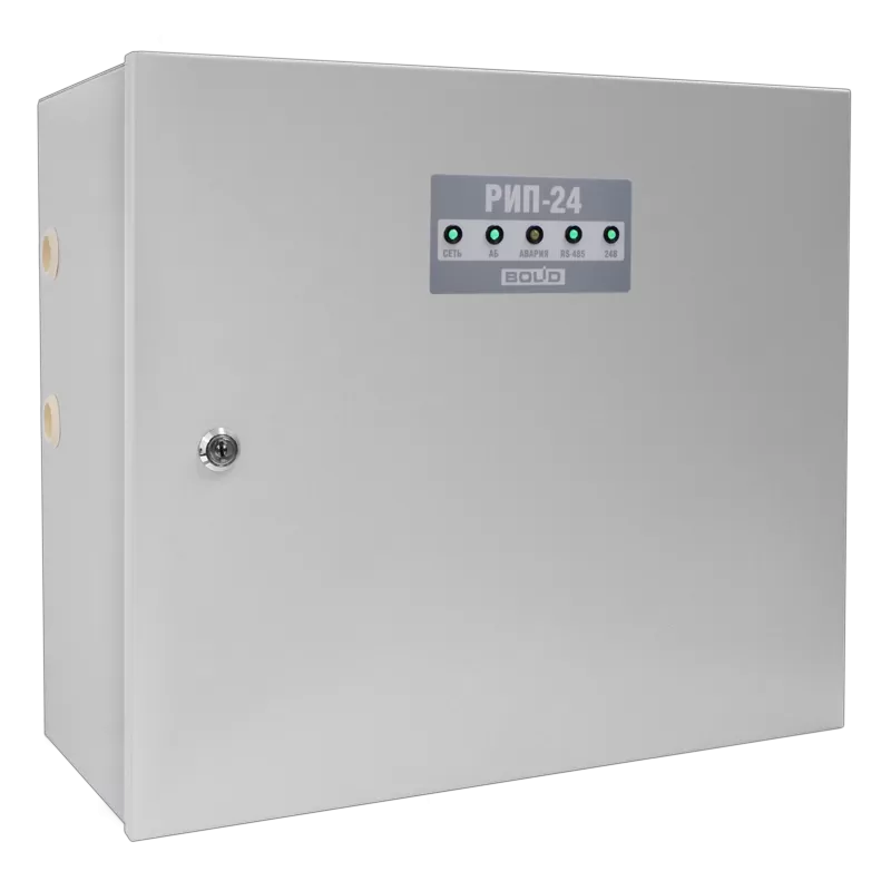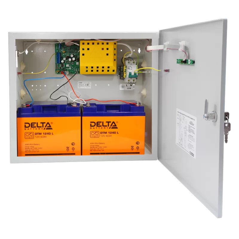 24 В; 4 А (мах 5 А); емкость АБ 40 Ач; световая индикация; звуковая сигнализация; датчик вскрытия корпуса; защита: от перенапряжения, от КЗ, от переполюсовки АБ; интерфейс RS-485.